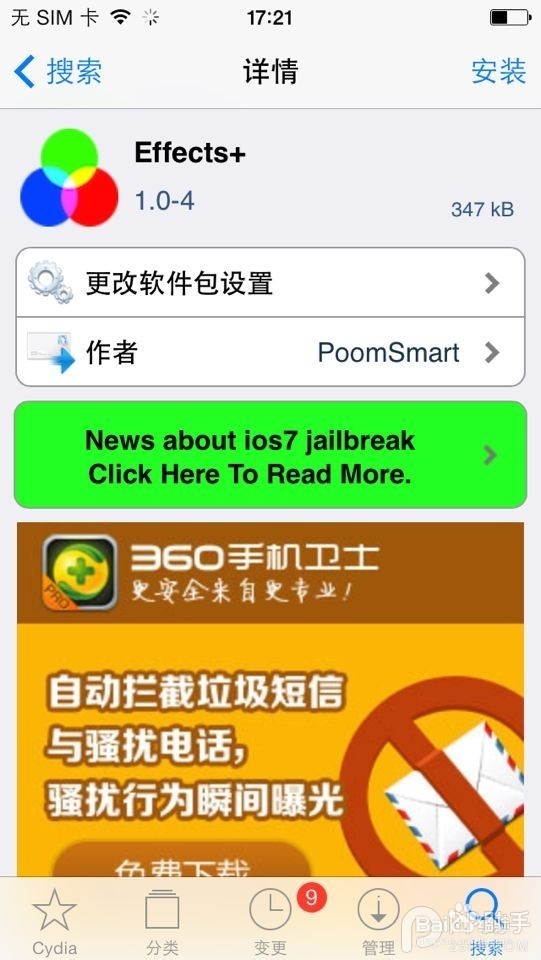 1.假如你的设备现已越狱了,那么相信你必定已增加BigBoss源。这样一来,翻开Cydia源,你就可以直接挑选下方【查找】,然后在查找框中输入Effects+。